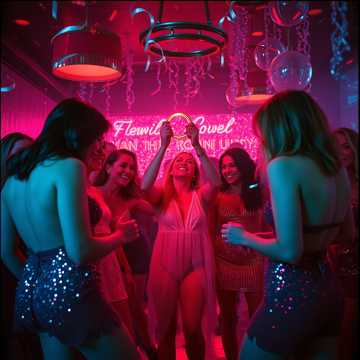 Erica i glitter från topp till tå Hon snurrar runt Hela golvet får gå Sandra skriker skål innan hon ens hällt i Skrattar högt Säger allt vi andra tänker (åh!)