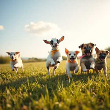 [Kids Song, 3 years old style, very simple, repetitive melody, cheerful child voice, funny sound effects: dog barking, goat bleating, stomping, toy bells, happy synth, russian]