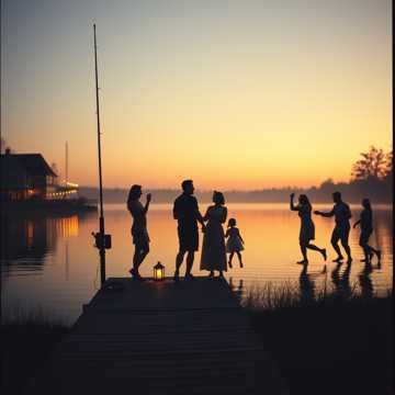 Horgászbot a kézben, család körbe áll,