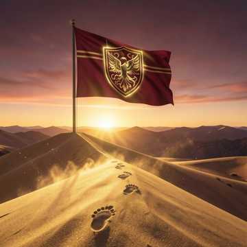 Traditional Gulf-style ardha energy, male vocals leading a sturdy unison chorus. Heavy tribal percussion, layered handclaps, and call-and-response backing chants; verses ride a steady march while the hook widens with group vocals and bold octave doubles. Roomy reverb on main voice for regal depth, with brief drum rolls to lift into each chorus.
